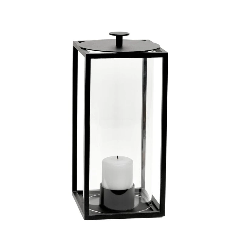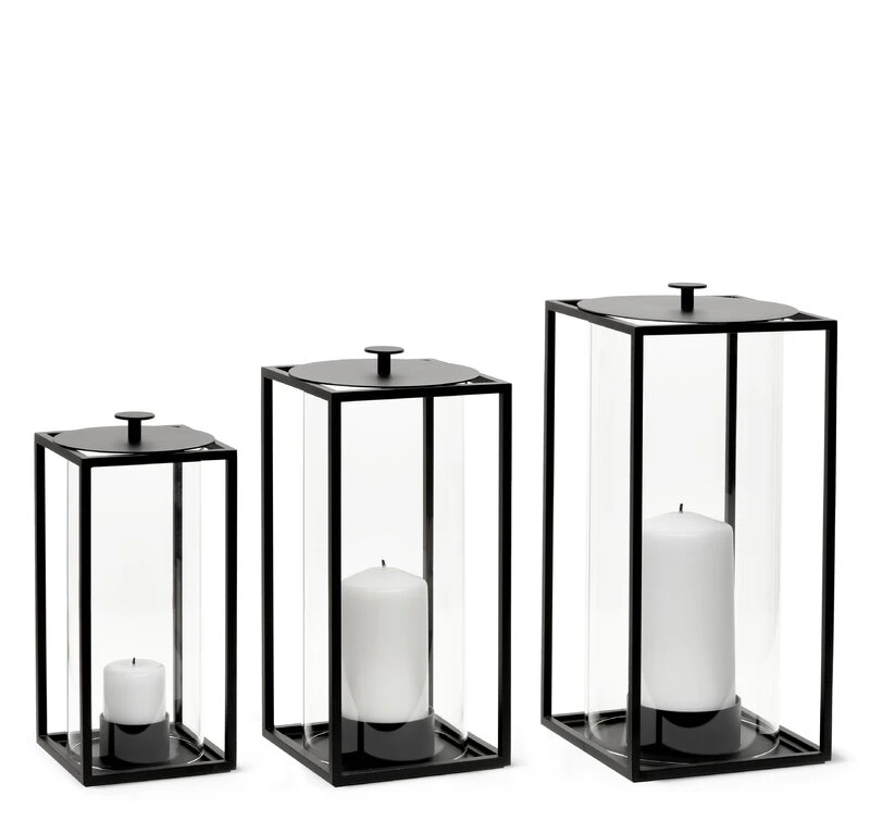 Die Light’In-Laterne von Lassen ist ein minimalistischer, geometrischer Kerzenhalter, der sich aus einer zeitlos eleganten Kombination aus einem kubischen Metallrahmen und einer zylinderförmigen Glaslaterne zusammensetzt. Light’In ist sowohl für Teelichter als auch für Stumpenkerzen mit einem maximalen Durchmesser von 4 cm geeignet. Die von Søren Lassen designte Laterne kann sowohl im Innenbereich als auch im Freien auf dem Balkon, im Innenhof oder auf der Terrasse, mit oder ohne Deckel, verwendet werden.