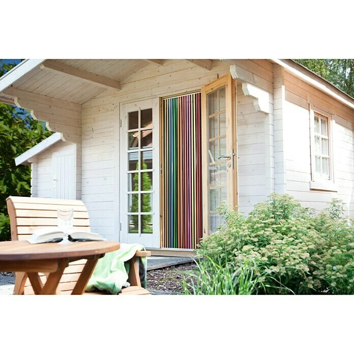 Der Conacord Streifenvorhang Multicolor schafft einen dekorativen und modernen Sichtschutz in den eigenen vier Wänden. Die robusten Stränge in Multicolor aus PE-Folie ergeben einen blickdichten, vor Sonneneinstrahlung schützenden und geräuscharmen Vorhang, der vielseitig eingesetzt werden kann – unter anderem lässt er sich in Durchgängen oder Türrahmen als optische Raumtrennung verwenden. Gleichzeitig bietet er dank der breiten Stränge einen Fliegen- und Insektenschutz. Der Vorhang ist an einer Kunststoffleiste befestigt, die sich mit Haken an der Wand befestigen lässt.