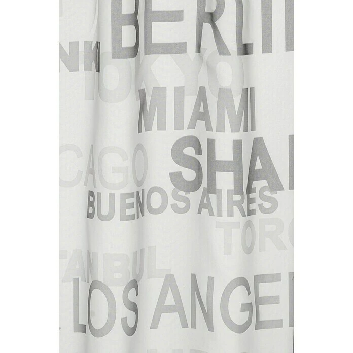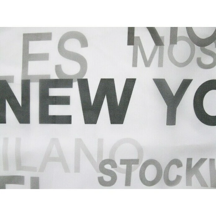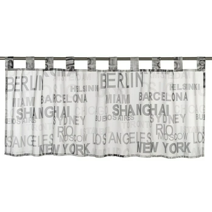 Die Elbersdrucke Bistrogardine City ist eine transparente Scheibengardine aus hochwertigem Voile. Sie begeistert mit trendigen, aufgedruckten Städtenamen. Ein optischer Genuss – besonders am Küchenfenster. Dieses pflegeleichte Panneau mit praktischer Schlaufen-Aufhängung bietet einen leichten Sichtschutz: Der untere Teil des Fensters wird verdeckt und hält neugierige Blicke fern, darüber kann man trotzdem den Ausblick genießen.