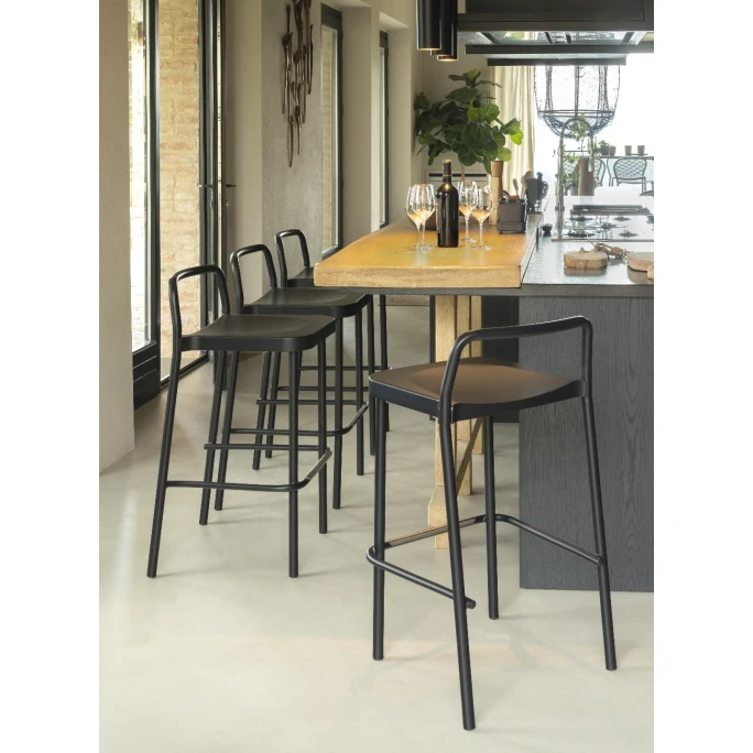 Mit dem schlichen Barhocker-Set GRACE von emu setzen Sie überall geschmackvolle Akzente. Das Set besteht aus zwei minimalistischen Barhockern und wurde von dem Designer Samuel Wilkinson für emu entworfen. Die Sitzmöbel sind komplett aus Aluminium gefertigt. Sie zeichnen sich dabei durch den zeitlosen Vintage-Stil aus und lassen Retro-Feeling aufkommen. Die Möbel bieten einen angenehmen Sitzkomfort und können vielseitig verwendet werden. Die Hocker sind mit vier praktischen Beinen ausgestattet. Dadurch bieten sie einen sicheren und stabilen Stand. Wir bieten Ihnen die innovativen Sitzmöbel aus der Serie GRACE in verschiedenen Farbvarianten an. Sie können hierzu auch passende Stühle mit oder ohne Armlehnen aus dieser Serie in unserem AMBIENDO Shop erwerben. Machen Sie es sich mit dem Barhocker 2er Set GRACE von emu im Indoor- oder Outdoorbereich gemütlich!