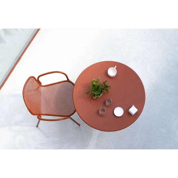 Mit dem stilvollen Armlehnstuhl-Set RONDA XS von emu setzen Sie überall dekorative Akzente. Hierbei handelt es sich um die kompaktere Variante des RONDA Armlehnstuhls, der seit vielen Jahren ein absoluter Klassiker von emu ist. Da die Sitzmöbel weniger Platz beanspruchen als die große Schwester RONDA eignen sie sich auch z. B. für einen kleinen Balkon oder eine kleinere Terrasse. Das puristische Set besteht aus vier Stühlen mit praktischen Armlehnen, welche sich durch Ihre schlichten und eleganten Linien auszeichnen. Die Struktur besteht aus Eisenrohr und die Rückenlehnen- sowie Sitzflächen sind aus vorverzinktem Streckmetall in fein gelöcherter Optik gefertigt. Die Stühle bieten dabei einen angenehmen Sitzkomfort und können vielseitig verwendet werden. Sie sind mit vier Beinen ausgestattet und haben dadurch einen sicheren sowie stabilen Stand. Wir bieten Ihnen die modernen Sitzmöbel aus der Serie RONDA XS in verschiedenen Farbvarianten an. Sie können hierzu auch passende Stühle ohne Armlehnen und Barhocker aus dieser Serie in unserem AMBIENDO Shop erwerben. Machen Sie es sich mit dem Armlehnstuhl 4er Set RONDA XS von emu gemütlich!