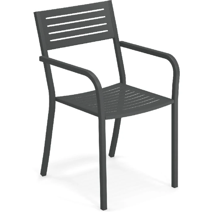 Mit dem zeitlosen Armlehnstuhl-Set SEGNO von emu setzen Sie überall geschmackvolle Akzente. Das klassische Set besteht aus vier schlichten Stühlen mit praktischen Armlehnen und wurde von dem Designer Aldo Ciabatti für emu entworfen. Die robusten Möbel sind komplett aus pulverbeschichtetem Stahl gefertigt. Sie zeichnen sich dabei durch die klare Formensprache mit einem horizontalen, markanten Linienmotiv aus. Die Möbel bieten einen angenehmen Sitzkomfort und können vielseitig verwendet werden. Die langlebigen Stühle sind mit vier praktischen Beinen ausgestattet. Dadurch bieten sie einen sicheren und stabilen Stand. Wir bieten Ihnen die charakteristischen Sitzmöbel aus der Serie SEGNO in verschiedenen Farbvarianten an. Sie können hierzu auch passende Stühle ohne Armlehnen und Barhocker aus dieser Serie in unserem AMBIENDO Shop erwerben. Machen Sie es sich mit dem Armlehnstuhl 4er Set SEGNO von emu im Outdoorbereich gemütlich!