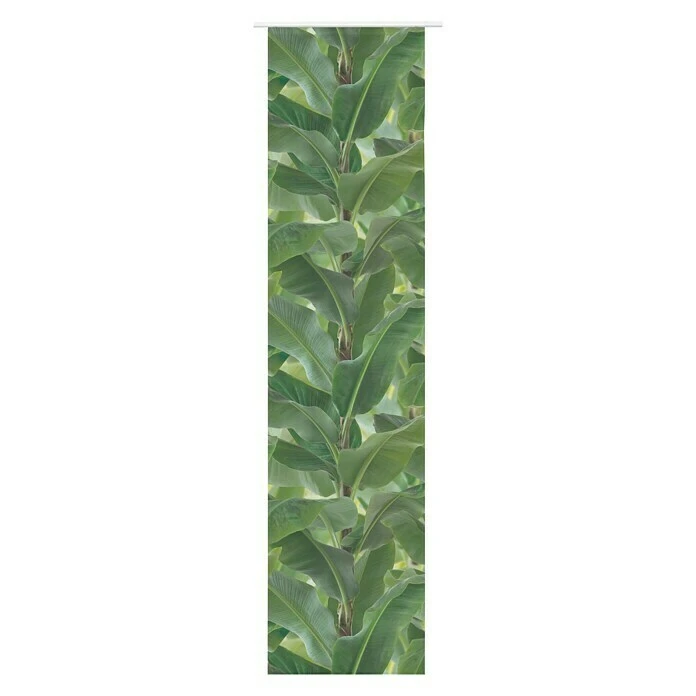 Mit dem Flächenvorhang LEAF von Expo Ambiente lässt sich jedem Wohnraum ein Hauch von Frische und Originalität verleihen. Somit kann für ein angenehmes und einzigartiges Ambiente gesorgt werden. Der aus hochwertigem, feinem Voile ausgeführte, transparente und leicht glänzende Vorhang überzeugt durch seine weiche, leichte Qualität, schönen Fall und attraktives, naturnahes Aussehen. Das trendige, im Digitaldruckverfahren ausgeführte fotorealistische Bananenbaum-Design dieses Vorhangs wertet den Raum optisch auf und lässt sich dabei hervorragend mit Uni-Schiebevorhängen kombinieren. Das Aufhängen des Vorhangs erfolgt schnell und einfach mithilfe des Klettbands. Dank des 4 cm Tunnels am Bodensaum kann der Vorhang mit einem Beschwerungsstab versehen werden (nicht im Lieferumfang enthalten).