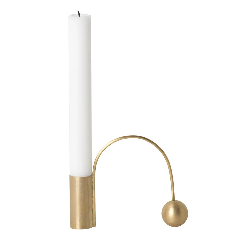 Der Kerzenhalter Balance von ferm LIVING ist ein schlichter, moderner Kerzenhalter, der auf skulpturalen, geometrischen Formen balanciert. Er besteht aus matt poliertem Messing und verleiht dem Haus ein elegantes Licht.