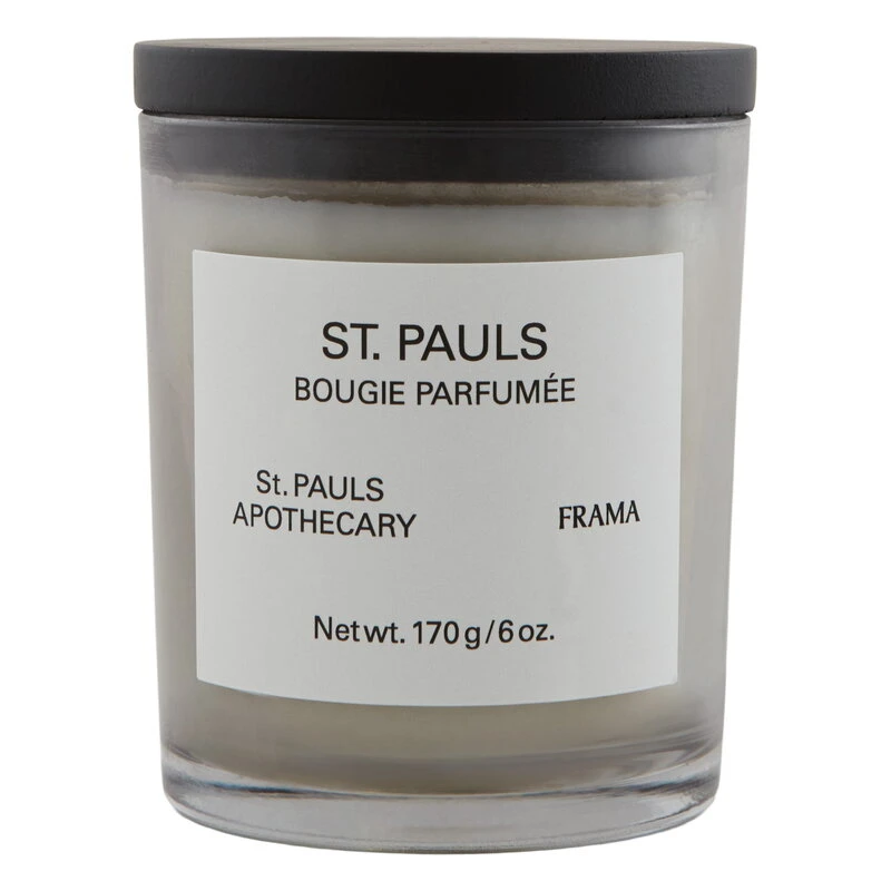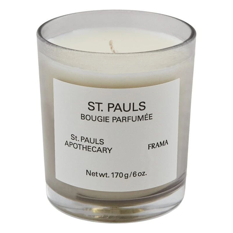 Die „St. Pauls“-Duftkerze von Frama ist vom Standort des Frama-Showroom inspiriert. Es handelt sich um ein historisches Gebäude, in dem früher eine Apotheke namens St. Pauls Apotek untergebracht war. Der Duft fängt die Essenz der Marke treffend ein. Er ist frisch und komplex und gleichzeitig wunderbar nostalgisch und beruhigend. Der Duft ist eine erdige Mischung aus Kräutern, Gewürzen und Holz mit den Hauptnoten Zitronengras, Koriander, Mysore-Sandelholz und Zedernholz.