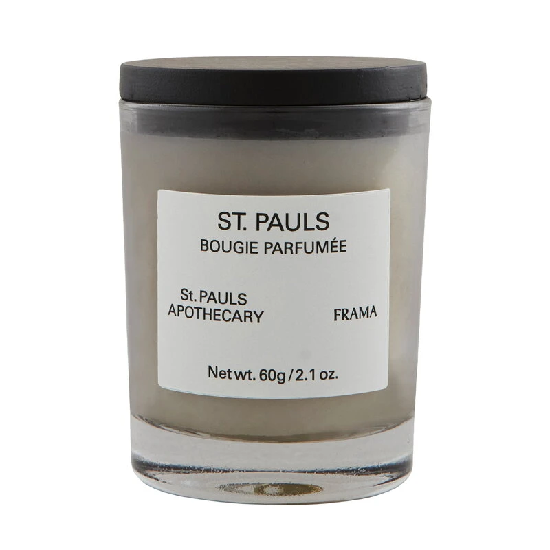 Die „St. Pauls“-Duftkerze von Frama ist vom Standort des Frama-Showrooms inspiriert. Es handelt sich dabei um ein historisches Gebäude, in dem früher eine Apotheke namens „St. Pauls Apotek“ untergebracht war. Der Duft fängt die Essenz der Marke treffend ein. Er ist frisch und komplex und gleichzeitig wunderbar nostalgisch und beruhigend. Der Duft ist eine erdige Mischung aus Kräutern, Gewürzen und Holz mit den Hauptnoten Zitronengras, Koriander, Mysore-Sandelholz und Zedernholz.