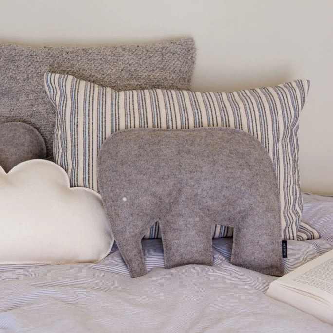 Modernes, unifarbenes Design und pflegeleichtes Material: Das ELEFANT Kissen von Hey-SIGN lässt garantiert jedes Kinderherz höher schlagen. Aus reiner, OEKO-TEX zertifizierter und mit dem Wollsiegel dokumentierter Schurwolle in Deutschland gefertigt, sorgt das ELEFANT Filzkissen für einen tollen Eyecatcher im Kinderzimmer. ELEFANT ist aber nicht nur ein süßes Accessoire, sondern lädt aufgrund seiner weichen Beschaffenheit, seiner eingenähten Füllung aus formbeständiger Hanffaser und seiner Größe direkt zum Kuscheln und Entspannen ein. Das Ausgangsmaterial der Hey-SIGN Kissen, der reine Wollfilz, besitzt durch das von Natur aus enthaltene Wollfett Lanolin schmutz- und wasserabweisende Eigenschaften und ist daher perfekt für das Kinderzimmer. Aufgrund der Lichtverhältnisse bei der Produktfotografie und unterschiedlichen Bildschirmeinstellungen kann es dazu kommen, dass die Farbe des Produktes nicht authentisch wiedergegeben wird. Bitte beachten Sie, dass die Farbe auf Ihrem Bildschirm von dem tatsächlichen Produkt abweichen kann. Geringfügige Veränderungen und leichte Einschlüsse von Naturfasern auf der Oberfläche sind ein Beweis für die 100%ige natürliche Herkunft des Materials. Überzeugen Sie sich selbst von dem niedlichen Design und der hohen Qualität und machen Ihrem kleinen Liebling mit dem Wollfilz ELEFANT Kissen von Hey-SIGN ein besonders schöne Freude!