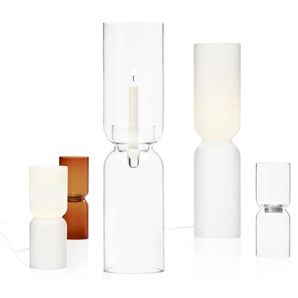 Der Kerzenhalter Lantern wurde von Harri Koskinen entworfen und ist eine moderne Designikone für sich. Der aus mundgeblasenem Glas gefertigte Kerzenhalter zeichnet sich durch eine stromlinienförmige, symmetrische Form aus, die die Illusion von schwebendem Licht erzeugt. Das skulpturale Lantern-Design wird durch flackernden Kerzenschein noch verstärkt und ist eine schöne Bereicherung für jedes moderne Interieur. Die kleine Lantern hat die gleichen Proportionen wie das größere Modell, ist aber aufgrund ihrer kleineren Größe für ein Teelicht geeignet.