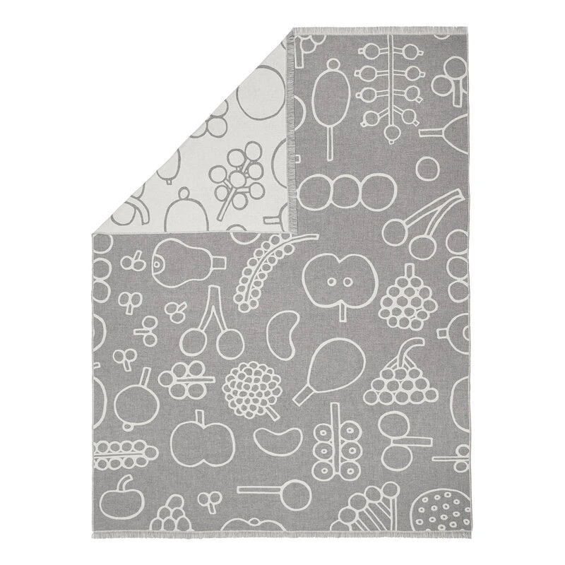 Die Frutta-Decke ist Teil der Iittala-Kollektion mit dem Titel „The Curious Mind of Oiva Toikka“. Die Artikel der Kollektion sind mit farbenfrohen, lebendigen Mustern verziert, die auf originalen Skizzen und Zeichnungen aus dem Archiv des finnischen Designers und Künstlers Oiva Toikka basieren. Die verspielte Kollektion zelebriert die endlose Fantasie und den kühnen Ausdruck des legendären finnischen Glaskünstlers. „Ich bin nicht auf der Suche nach Perfektion. Ich will, dass es Spaß macht!“, sagte Toikka selbst.