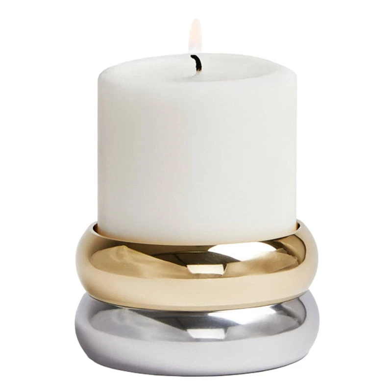 Der Kerzenhalter Marriage von Klong ist eine schöne Verbindung von poliertem Aluminium und Messing. Der Kerzenhalter wurde von Eva Schildt entworfen und besteht aus zwei übereinanderliegenden Ringen. Mit einem Durchmesser von 9,5 cm ist Marriage für Tischkerzen konzipiert.