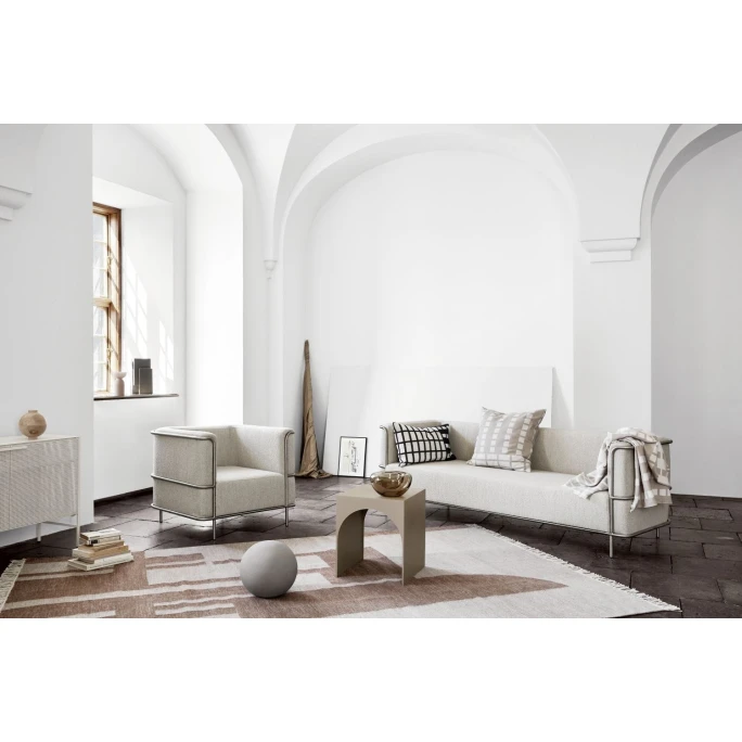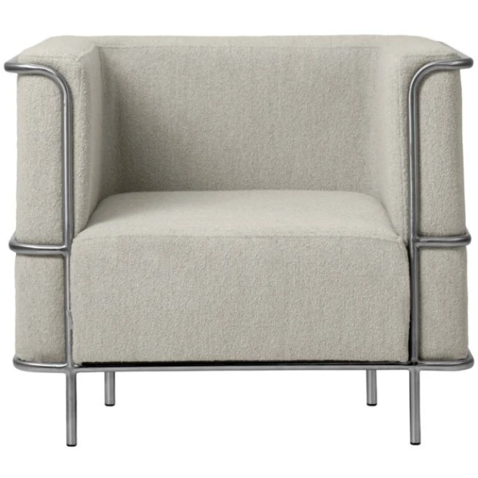 Der Modernist Lounge Chair von Kristina Dam Studio ist ein schicker und bequemer Sessel, der im Wohnzimmer genauso gut aussieht wie im Ess-, Arbeits- oder Schlafbereich. Das massive Edelstahlgestell von Modernist ist vor allem edel und elegant und ein wesentliches Designmerkmal des Bauhausstils. Das Polster folgt auf aparteste Weise den Rundungen des Edelstahlgestells und besteht aus strapazierfähigem Schaumstoff mit einem superweichen Bouclé-Bezug aus Viskose, Acryl, Wolle, Polyester, Flachs und Baumwolle. Durch die klare Formgebung, die schöne Struktur des Gewebes und die zurückhaltende Farbgebung passt der Kristina Dam Studio Sessel zu jeder zeitgemäßen Wohnraumeinrichtung und setzt besonders stillvolle Akzente in Ihrem Zuhause. Um die Polsterung optimal aussehen zu lassen und die Lebensdauer zu verlängern, sollten Sie den Modernist Lounge Sessel nicht ins direkte Sonnenlicht oder in die Nähe einer starken Wärmequelle stellen, da dies mit der Zeit zu Farbveränderungen im Stoff führen kann. Der Bezug kann nicht von der Polsterung abgenommen werden. Daher sollten Sie den Stoff von Zeit zu Zeit mit der Hand glätten, verschüttete Flüssigkeiten sofort mit einem saugfähigen Papier oder Tuch sanft abtupfen und Flecken schnell durch Trockenreinigung mit Tetrachlorethylen-PCE entfernen. Machen Sie sich mit dem tollen Modernist Lounge Chair von Kristina Dam Studio eine bequeme und designstarke Freude!