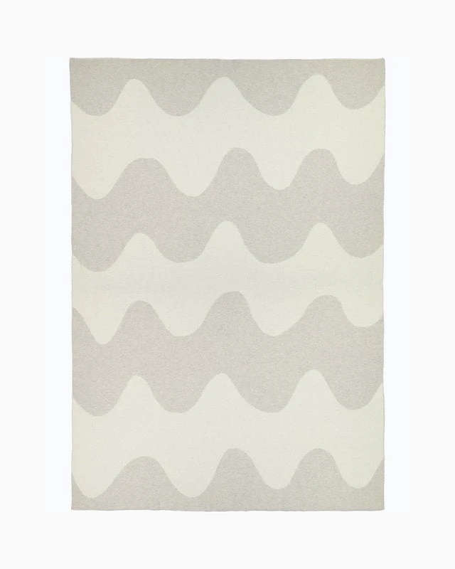Die Lokki-Decke von Marimekko ist mit dem Muster von Maija Isola aus dem Jahr 1961 illustriert. Lokki wurde von dem wellenförmigen Schattenspiel inspiriert, das das Sonnenlicht auf einem Vorhang erzeugt. Die zweifarbige Decke aus weichem, warmem Wollmischgewebe in doppelter Jacquard-Bindung ist eine schöne dekorative Ergänzung und Einschlafdecke auf einem Sofa oder Bett.