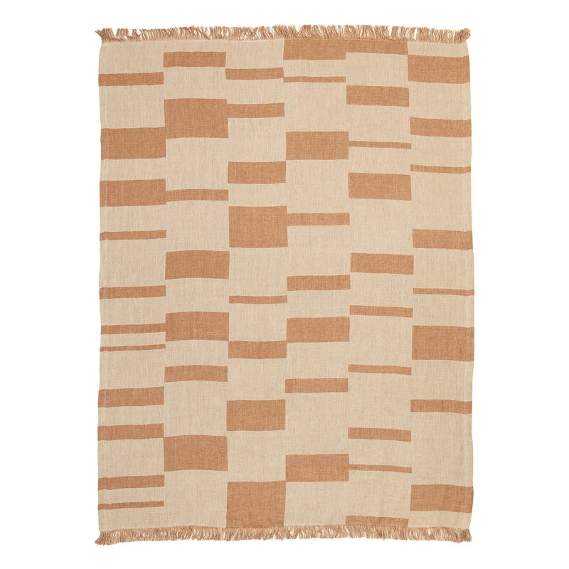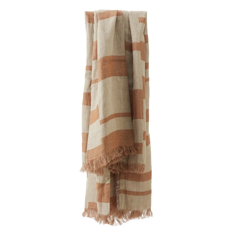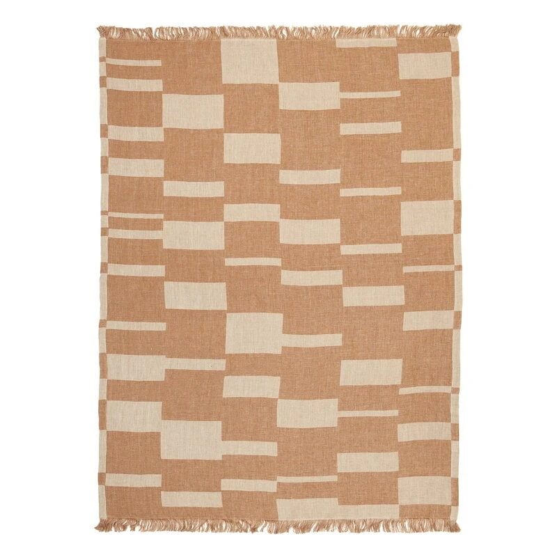 Die Oras-Decke von Anno präsentiert sich mit zweifarbigem Grafikmuster und natürlicher Leinenstruktur. Die von Pia Lehtovuori entworfene Decke besteht aus schwerem Oeko-Tex-zertifizierten Leinen, das wunderschön fällt. Leinen ist ein strapazierfähiges Material, das mit der Zeit immer weicher wird. Es eignet sich ideal als Material für Decken, da es bei kalten Temperaturen gemütlich warm hält und sich bei warmen Temperaturen kühl und atmungsaktiv anfühlt. Ein schmaler Fransensaum an beiden Enden rundet die doppelseitige Oras-Decke ab.