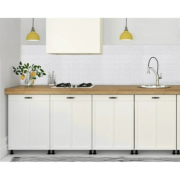 Gestalten Sie mit den 3D Wandpaneelen schnell und unkompliziert Ihre Wände und Räume neu. Die Pannele sind wasserdicht und können daher perfekt in der Küche als Spritzschutz oder jeder Waschbeckenumgebung angebracht werden. Unschöne Fliesen werden im Handumdrehen verkleidet, ganz ohne Fugen oder unschöne Übergänge. Das angesagte Vintage-Design der Paneele verleiht jedem Raum im Nu einen individuellen Charakter im modernen Landhaus-Stil. Besonders hervorzuheben ist die einfache Montage der Vertäfelung, für die keine handwerklichen Fähigkeiten benötigt werden. Sie wird problemlos selbst angebracht und das ganz ohne professionelle Werkzeuge – lediglich ein Cuttermesser und Montagekleber werden benötigt, und schon kann es losgehen. Die PVC-Wandpaneele können auf nahezu jedem Untergrund angebracht werden. Egal ob Sie ihrer Küche einem DIY Makeover unterziehen möchten oder einen Neubau haben, die 3D Wandpaneele verleihen jedem Innenraum innerhalb weniger Stunden ein stilvolles und modernes Ambiente. Dank der ultra-robusten Oberfläche sind sie außerdem besonders leicht zu reinigen.