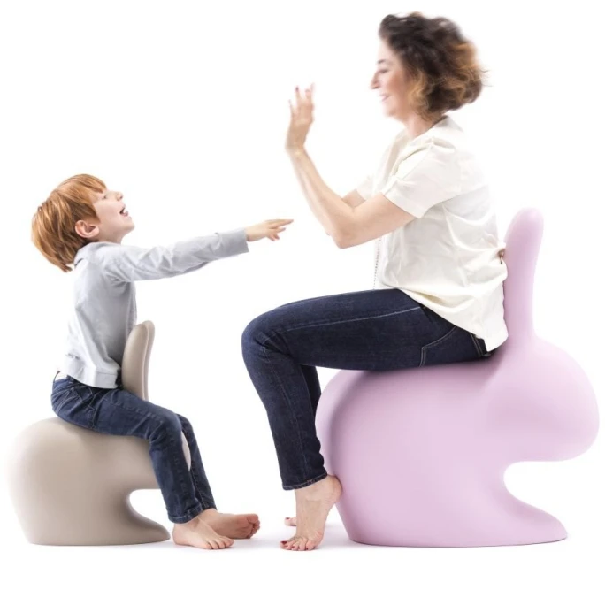 Qeeboo ist eine italienische Marke, welche 2016 von Stefano Giovannoni gegründet wurde und die hochwertige Möbel sowie extravagante Accessoires herstellt. Dabei handelt es sich um außergewöhnliche Objekte, die unter der sorgfältigen Leitung von Stefano Giovannoni in Zusammenarbeit mit den vielseitigsten internationalen Designern geschaffen wurden und verschiedene Stile sowie Charaktere in einen spielerisch-narrativen Ansatz integrieren. Die innovative, farbenfrohe Rabbit Serie von qeeboo avanciert dabei zur absoluten Popikone. Sowohl in der westlichen und als auch in der östlichen Kultur verkörpert das Kaninchen Liebe sowie Fruchtbarkeit und soll außerdem Glück bringen. Der Stuhl aus dieser Serie überzeugt durch Funktionalität und Design. Die Idee des Kaninchens, eines sanften, liebenswerten und scheuen Tieres, stammt aus der Verbindung seiner Silhouette mit der eines Sitzes, wo die Ohren des Kaninchens zur Rückenlehne des Stuhls werden. Die Sitzmöglichkeit wurde in einer Dual-Variante entworfen, welche sowohl von Erwachsenen als auch von Kindern genutzt werden kann. Der Hocker in verspielter Häschenform besteht aus langlebigem Polyethylen (thermoplastischem Kunststoff), wodurch er robust und pflegeleicht ist. Ob Sie an den praktischen, langen Ohren lehnend relaxen oder auf der gegenüberliegenden Seite sitzen wollen oder ihr Nachwuchs darauf reiten und spielen möchte, mit dem Stuhl Rabbit Chair von qeeboo ist dies alles möglich. Wir bieten Ihnen das dekorative Design-Objekt in verschiedenen Ausführungen in unserem AMBIENDO Shop an. Gönnen Sie sich den angenehmen Sitzkomfort!