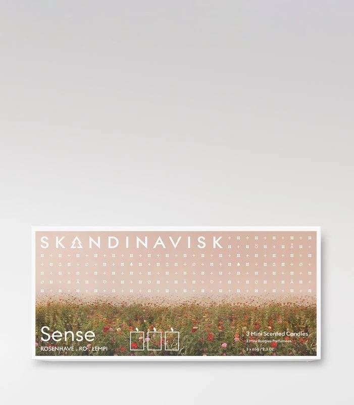 Das Sense-Duftkerzen-Geschenkset von Skandinavisk enthält drei kleine Duftkerzen mit Aromen, die von der nordischen Natur inspiriert sind. Die Duftkerze Rosenhave trägt Noten von Alba-Rose, Holunderblüten und schwarzen Johannisbeerknospen, während die Duftkerze Ro Noten von frisch geschnittenem Gras, Falllaub, Gurke und wilden Veilchen aufweist. Die Duftkerze Lempi wurde von der unvergleichlichen Schönheit der nordischen Sommer sowie der Nostalgie alter romantischer Liebesgeschichten inspiriert.