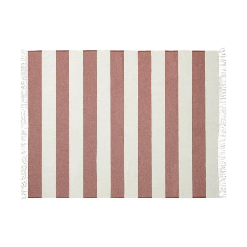 Die The-Sweater-Decke des dänischen Textilunternehmens Silkeborg Uldspinderi fühlt sich an wie Ihr Lieblingspullover. Die von Stilleben entworfene Sweater-Decke besticht durch ein einfaches, pastellfarbenes Streifenmuster mit Fransen an den Enden. Die Decke ist 130 x 190 cm groß und besteht zu 100 % aus Wolle, was sie schön warm und besonders strapazierfähig macht.