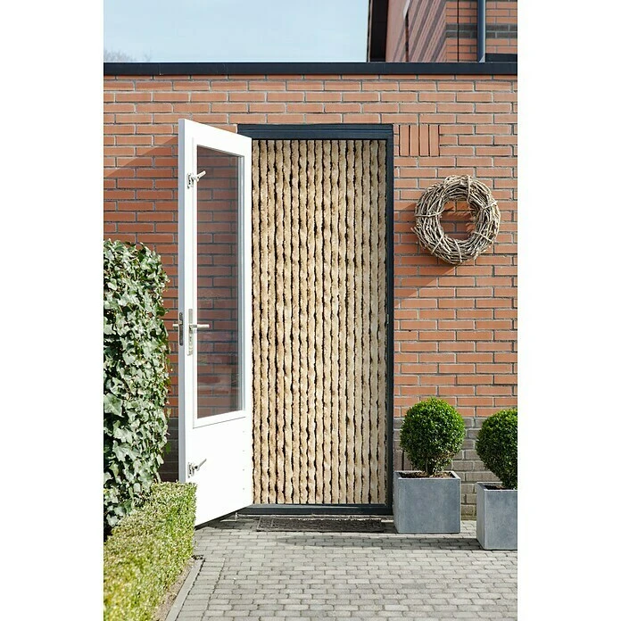 Der Türvorhang Martinique kombiniert stilvolle, flauschige Stränge mit einem effektiven Schutz gegen Fliegen, Mücken und Ungeziefer. Mit wenigen Handgriffen lässt sich der Vorhang einfach an Haken im Türrahmen befestigen und dient dort als dekorativer Insektenschutz für Ihr Zuhause.